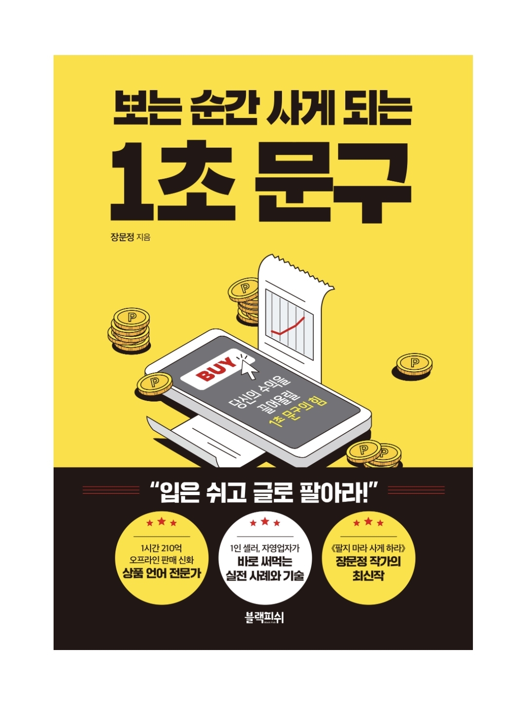 요즘같은 비대면 시대에는 말보다는 글을 더 많이 읽게 됩니다. 물론 줌도 있겠지만 온라인 컨텐츠 소모가 더 많다고 볼 수 있죠. 요즘 소비자는 말을 듣고 구매하는 것보다 눈으로 읽고 산다고 합니다. 이처럼 소비자는 글에 혹하기 때문에 잘만 지어놓는다면 큰 돈을 벌 수 도 있다고 합니다. 쇼호스트 당시 매출 최고 기록을 세웠던 장문정님의 책입니다. 실질적으로 도움되는 부분도 많다고 하니 '보는 순간 사게되는 1초 문구' 책 소개 들어가겠습니다.